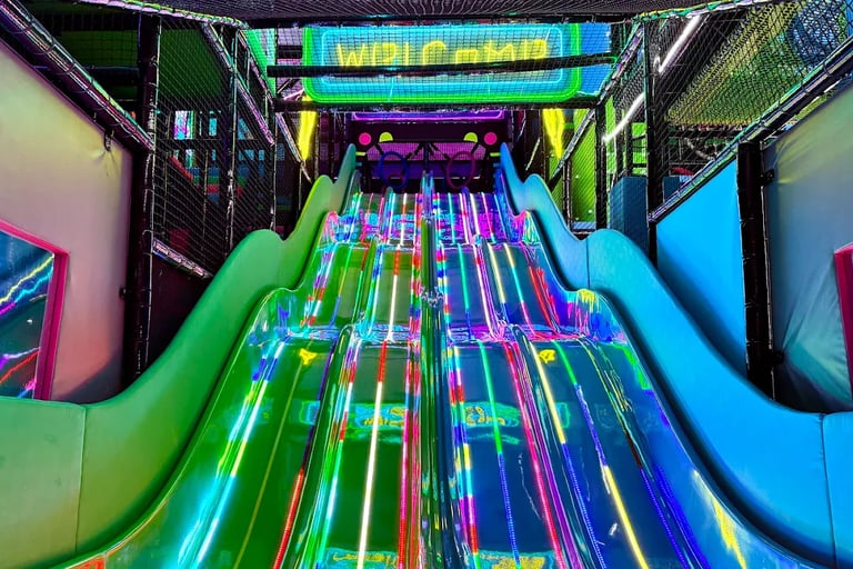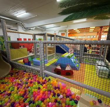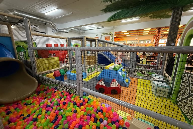 The largest indoor play area in the Algarve featuring lots of slides (including a death slide) and a big soft play.