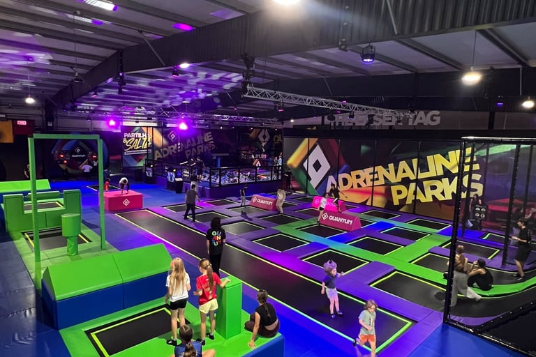 Featuring Trampolines, a ninja run and laser tag this recently opened (April 2026) area is ideal for indoor activities.